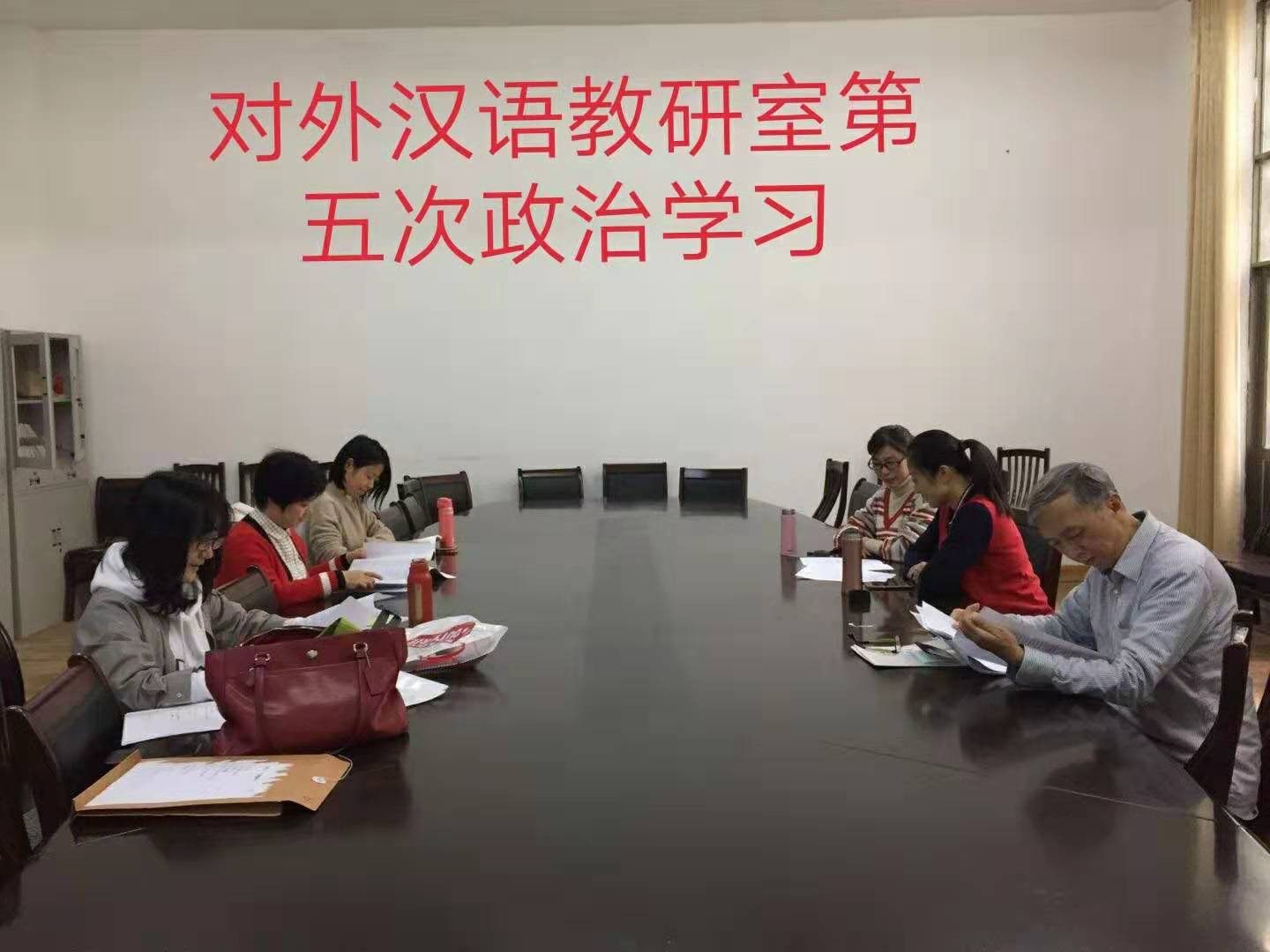 2019年11月7日下午,文学院组织教职工开展政治理论集中学习,学习资料由学院提供,学习研讨由各教研室主任和办公室主任组织。