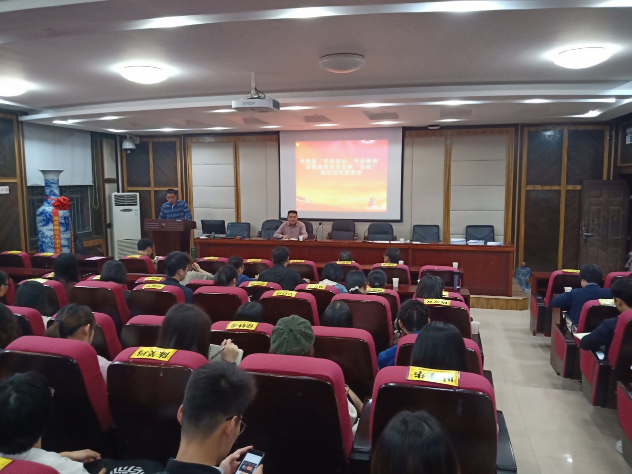 2019年11月5日晚7点,学院在216报告厅召开“不忘初心、牢记使命”主题教育和党支部“五化”建设工作培训推进会。院党委书记李伶俐、院党委委员肖百容、院党委办主任夏云飞、各支部书记、委员全部参加了会议,会议由院党委副书记熊剑峰主持。