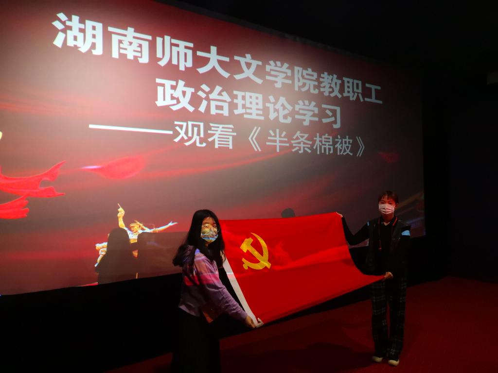 2020年10月22日下午,文学院组织学院全体教职工到通程亿鑫电影院集中观看电影《半条棉被》,学生党支部委员全体参加。