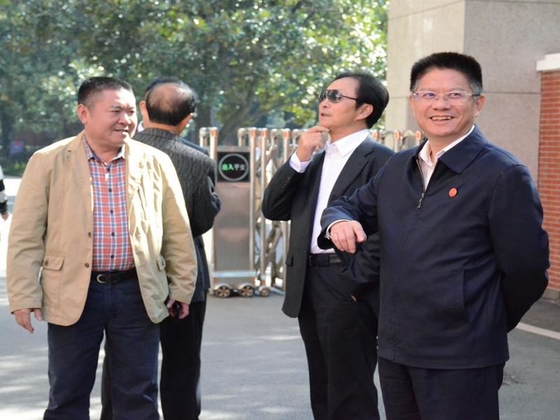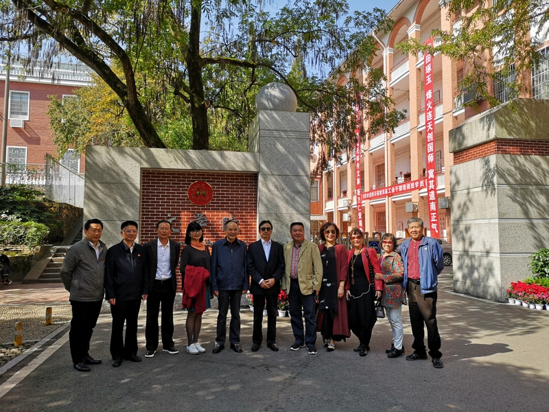 最后,魏文彬一行与陪同参观的领导于文学院大门前合影留念。