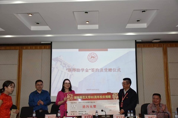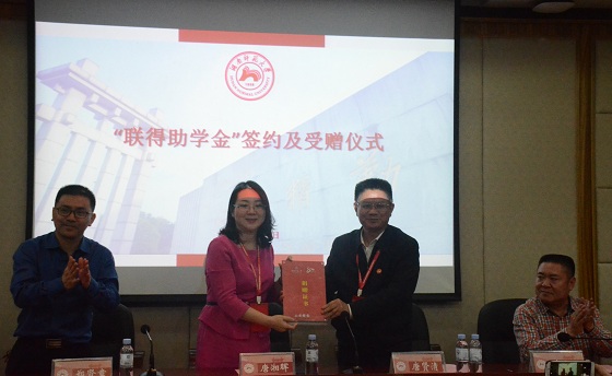 仪式伊始,熊剑峰简要介绍了唐湘晖、聂泉夫妇及其所设立项目“联得助学金”项目具体情况。接着,唐湘晖同校方签署捐赠协议,唐贤清代表校方接受捐赠并向唐湘晖颁发捐赠证书。