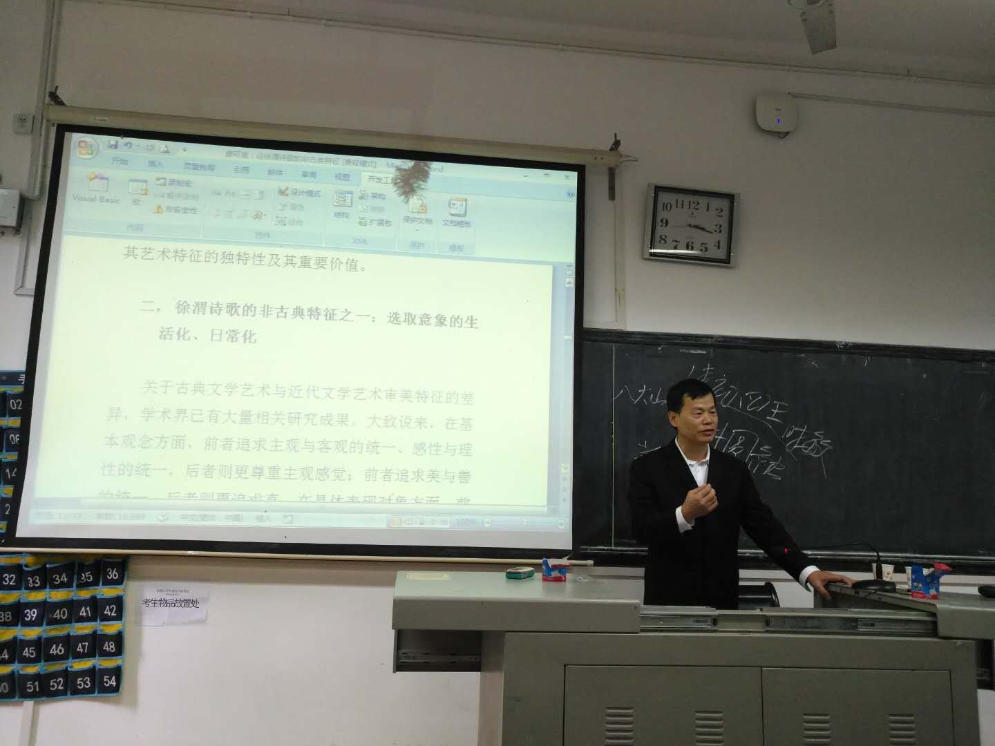 (通讯员 姚湘娟)10月13日下午3时,北京大学教授、博士生导师、中国古文献研究中心主任廖可斌,于湖南师范大学文学院314教研室开展了一场以“论徐渭诗歌的非古典特征”为题的讲座。该次讲座是湖南师范大学80周年校庆系列学术活动的重要组成部分,是文学院“智慧之光”学术名师系列讲座之一,由文学院蒋振华教授担任主持,古代文学专业的研究生与部分本科生参与聆听了讲座。