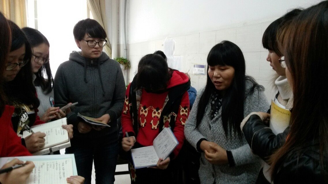 第一轮是全体实习老师分别上课,大家集体评议;第二轮是组织说课比赛,从中选出三名实习老师;第三轮,这三位实习老师反复进行教学实践,不断打磨润色。第四轮,将从中选出一位老师代表实习队进行汇报课的教学。每一个环节,都会组织认真的评课,请教学校任课老师。经历这样的磨课,无论是授课的还是参与听课、评课的实习老师,都得到了很大的提升。
