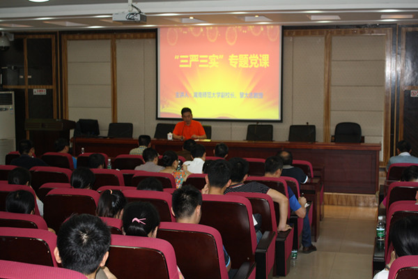 (通讯员胡媛媛郑璐佳)6月16日下午,副校长黎大志到文学院216学术报告厅主讲“三严三实”专题党课。校监察处处长兼“三严三实”专题教育第一督导组组长王先酉担任主持。