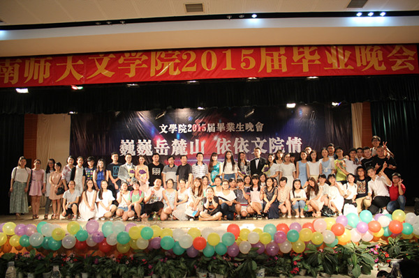 (通讯员唐洁黄珺俐)巍巍岳麓山,依依文院情。6月16日晚,由文学院学生会主办的2015届毕业晚会在江边活动中心举行。文学院党委副书记熊剑峰、文学院副院长岳凯华、学工办主任兼11级辅导员夏云飞、院团委书记张小春、2013级辅导员熊陶庆子、2014级辅导员周灿等学院领导老师出席晚会。