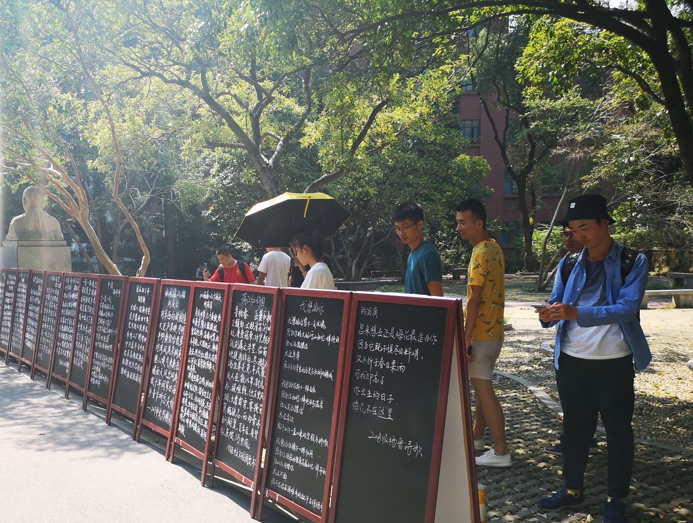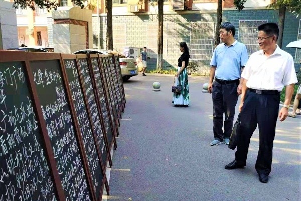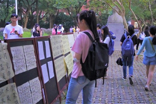 为庆祝中华人民共和国成立70周年,文学院组织开展“诗词迎国庆,吟诵传文明”系列活动。主要活动包括原创“我和我的祖国”诗歌评比活动、“诗词迎国庆,吟诵传文明”古典诗词吟诵大会和原创作品书法展。此次展示的书法作品精选自文学院师生暑期为祖国七十华诞原创的500余首作品。展览期间,吸引了广大师生驻足观摩。