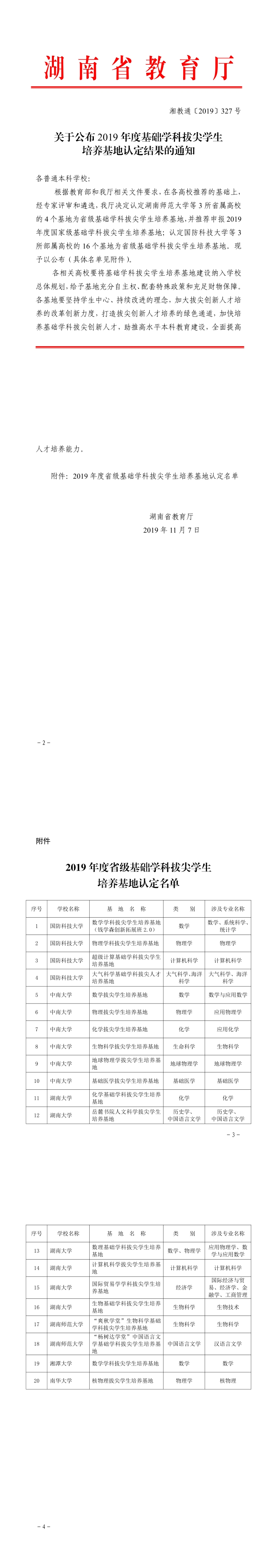 近日,湖南省教育厅正式发文,《关于公布2019年度基础学科拔尖学生培养基地认定结果的通知》,我院申报的“杨树达学堂”中国语言文学基础学科拔尖学生培养基地名列其中,这是我院新时代人才培养平台建设的阶段性成果。