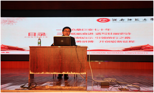 (通讯员 段兰 唐欣怡)11月26日晚,文学院院长郑贤章教授在励德楼学生活动中心讲授以“辉煌七十载 奋斗新时代”为主题的“形势与政策”课。