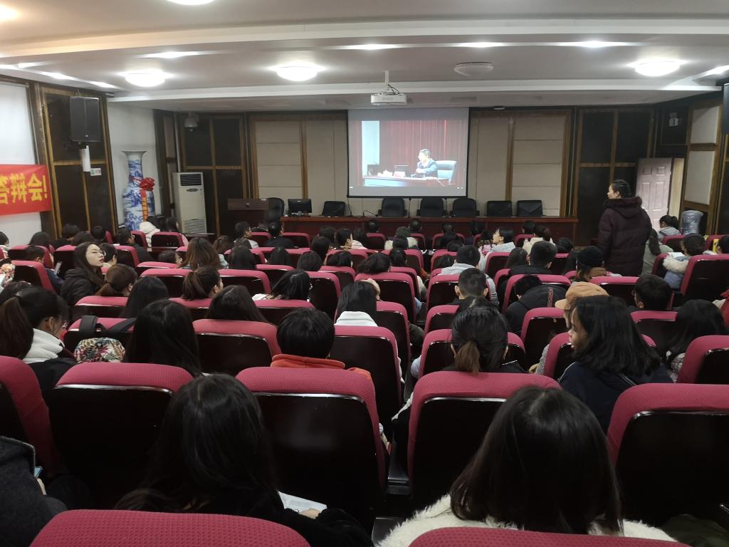 文学院在216多媒体教室设立分会场,组织全院在职教职工党员和部分学生党员收看。图为文学院分会场的收看现场。