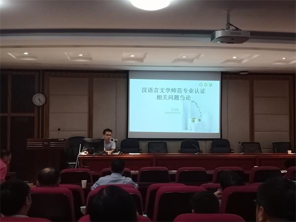 院党委委员、中文系系主任吕双伟就师范专业论证有关事项对全院教师进行了专题培训。