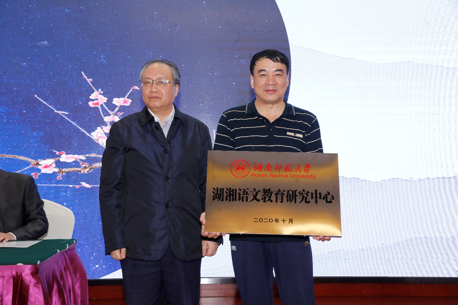 (副校长欧阳峣授牌,文学院教授张良田接牌)