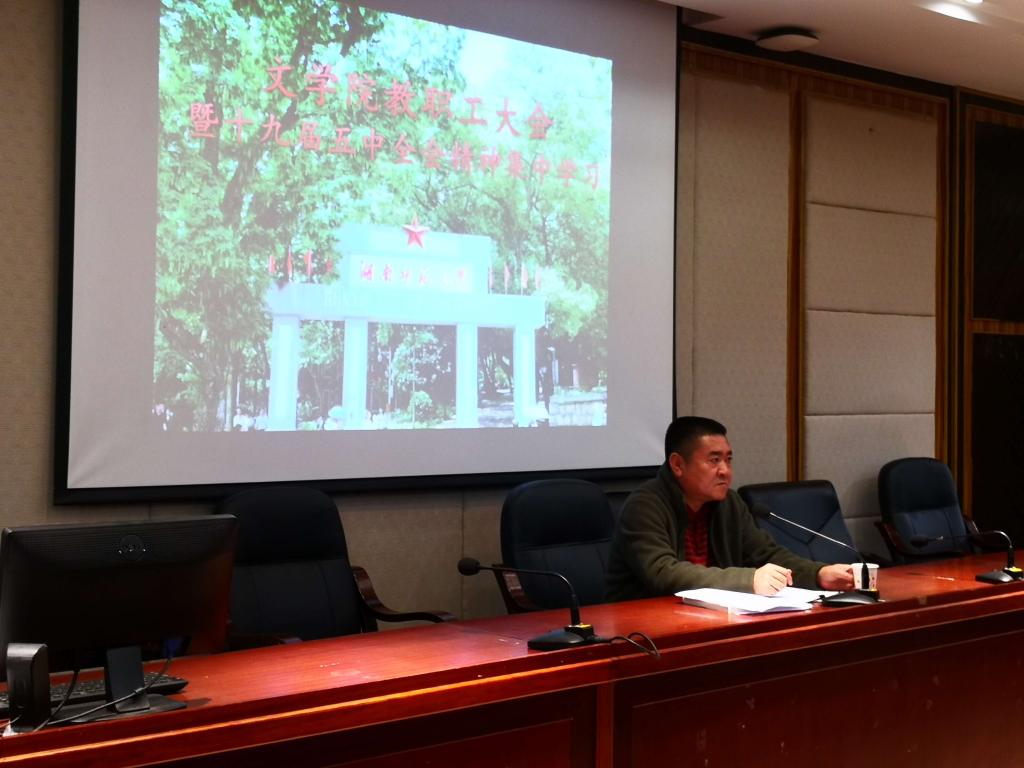 2020年11月19日下午,学院在216召开教职工暨党的十九届五中全会精神学习大会,全院教职工参加,会议由院党委书记李伶俐主持。