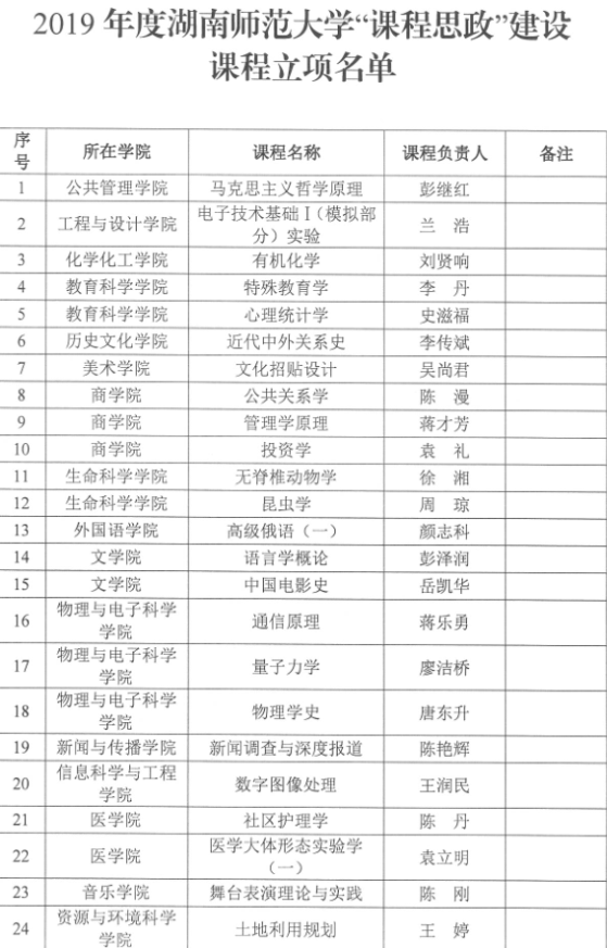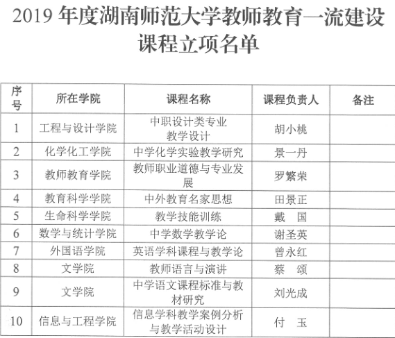 近期,在2019年度湖南师范大学线下一流建设课程立项评选中,经教师个人申报、各单位推荐、学校评审等多个环节,我院彭泽润老师的《语言学概论》、岳凯华老师的《中国电影史》获得“思政课程”建设课程立项;吕双伟老师的《唐宋八大家古文导读》、周悦老师的《经典研读与写作沟通》获得通识教育核心建设课程立项;蔡颂老师的《教师语言与演讲》、刘光成老师的《中文语文课程标准与教材研究》获得教师教育一流建设课程立项。