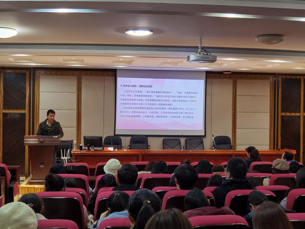 12月10日下午2:30,校党委委员、宣传部部长、校党委讲师团成员晏昱在文学院216多媒体教室作专题宣讲,主题为《深入学习贯彻习近平总书记考察湖南重要讲话精神》,文学院教职工行政党支部党员、全体学生预备党员聆听,文学院党委副书记熊剑峰主持。