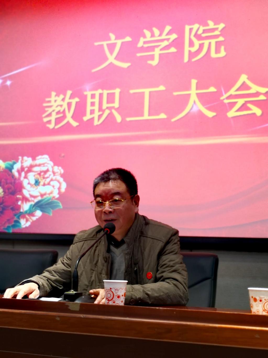 李伶俐宣讲了湖南省第十二次党代会和中央经济工作会议主要精神;宣读了文学院2022年工作要点,并就学院政治理论学习,国家一流学科专业建设,教育部教学优秀成果奖申报,党风廉政建设,师德师风建设,常态化防疫和安全稳定、意识形态和期末工作等作了进一步强调,要求全院教职工切实学懂弄通做实习近平新时代中国特色社会主义思想,忠诚捍卫“两个确立”,坚决做到“两个维护”。坚持“四有标准”,为党育人,为国育才,以教书育人、立德树人为己任,将价值塑造、能力培养、知识传授三位一体的教学理念贯穿于教育教学各个环节,不断提高育人本领和水平,以优异的成绩促进双一流建设,迎接党的二十大胜利召开。