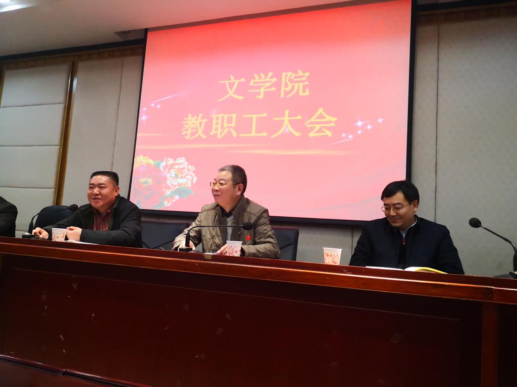 2021年12月16日下午,学院在216报告厅召开全院教职工大会,院党委书记李伶俐主持,校党委副书记周俊武、校党委委员组织部部长沈又红出席。