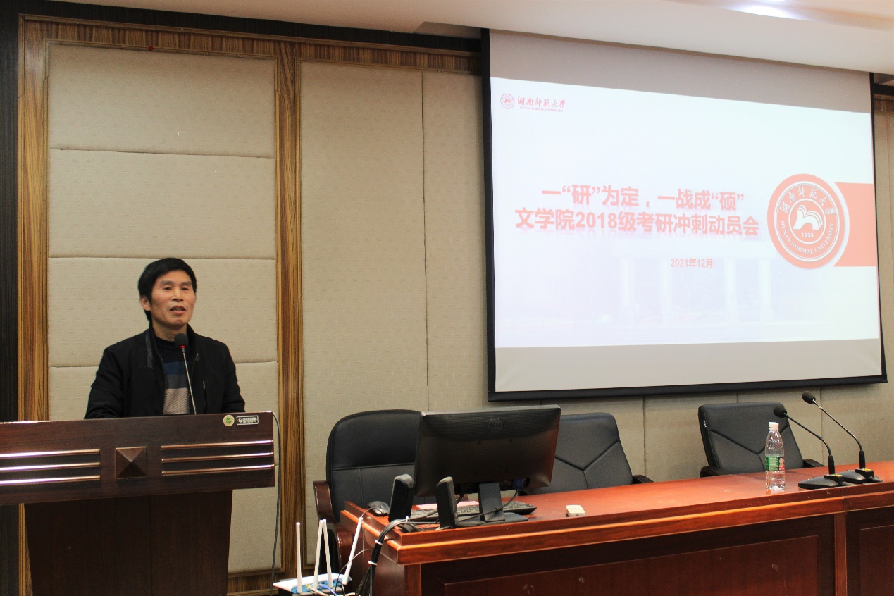 (通讯员 文静 田昊彤 欧警安)为缓解文学院考研备考生考前焦虑情绪,树立考研必胜的信心,12月23日下午,文学院于文渊楼216教室开展以“一‘研’为定,一战成‘硕’”为主题的2018级考研冲刺动员会。文学院党委副书记刘宓蜜,2018级全体班导师及部分考研备考生参加此次活动。冲刺动员会由2018级辅导员周紫阳主持。