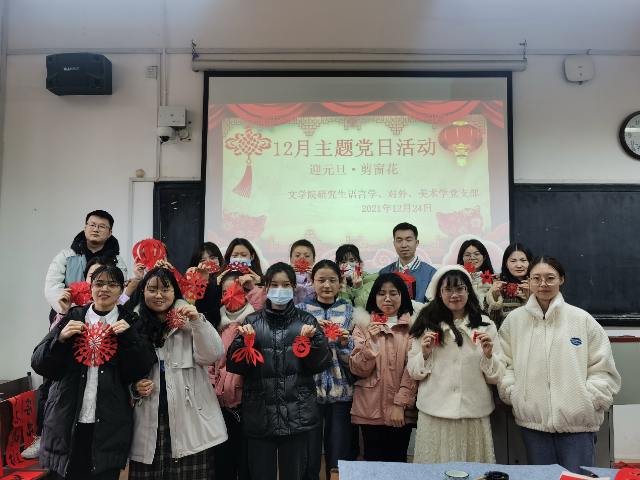 (通讯员 吕可 李思洁)2021年12月24日下午,文学院研究生语言学、对外、美术学党支部为提升学生党员的中国文学文化素养,结合专业特色,开展了“迎元旦、剪窗花”的主题党日活动。