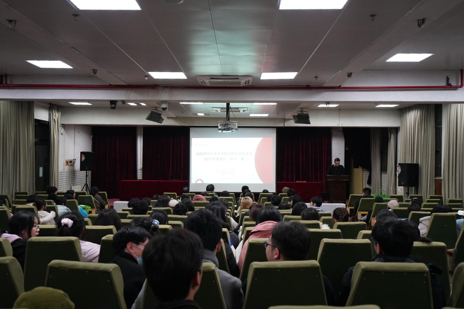 湖南省电影评论协会秘书长孙婵,中国电影评论学会理事、我校国际汉语文化学院院长蔡颂,文学院党委副书记刘宓蜜,文学院戏剧影视文学系主任胡海义,校图书馆老师张文龙,文学院戏文系专业教师曾小明、黄茵、刘库、李婕等以及全校多个专业的学生参加展映。