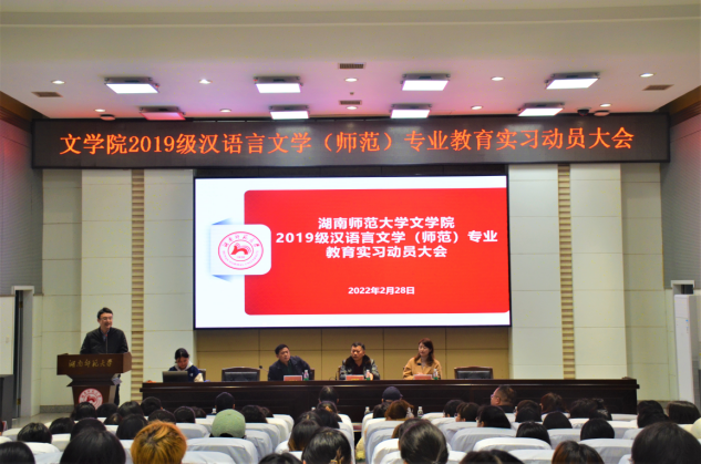 (通讯员刘璇梁羲润李阳)2月28日下午,我院2019级汉语言文学(师范)专业教育实习动员大会于至善楼至善讲堂召开。学院副院长岳凯华、党委副书记刘宓蜜、中文系实习领导小组执行组长刘光成以及各实习队指导老师出席会议,2019级汉语言文学(师范)专业全体学生参加。