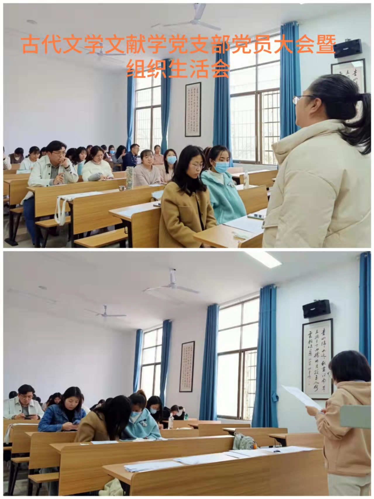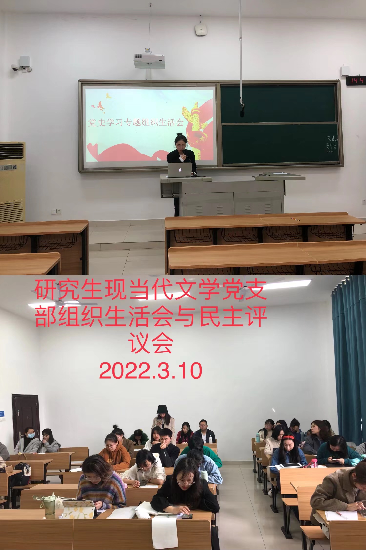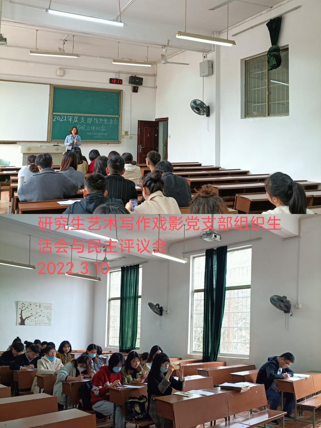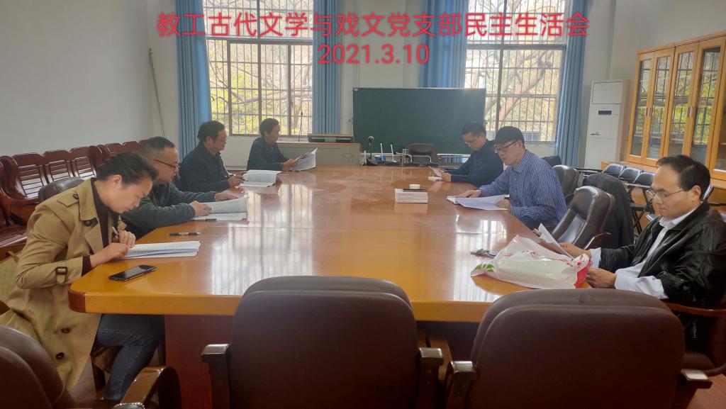 2022年3月10日下午,文学院各党支部召开党史学习教育专题组织生活会,开展民主评议党员及支部书记“双述双评”,院党委委员以普通党员身份参加会议,会议由各党支部书记主持。