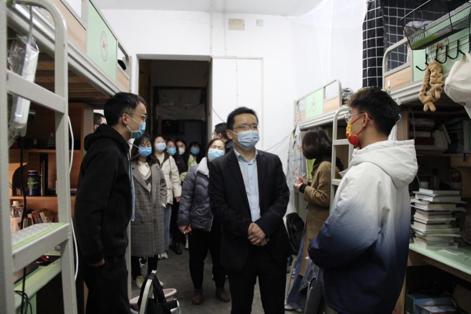 (通讯员:李婉晴)为落实学校疫情防控的各项措施,全面了解疫情防控期间学生学习和生活情况,3月23日晚,副院长吕双伟、研究生办主任王芳、辅导员陈雅琪和牟方磊老师一行深入研究生学生宿舍,开展走访慰问学生、指导宿舍疫情防控工作。