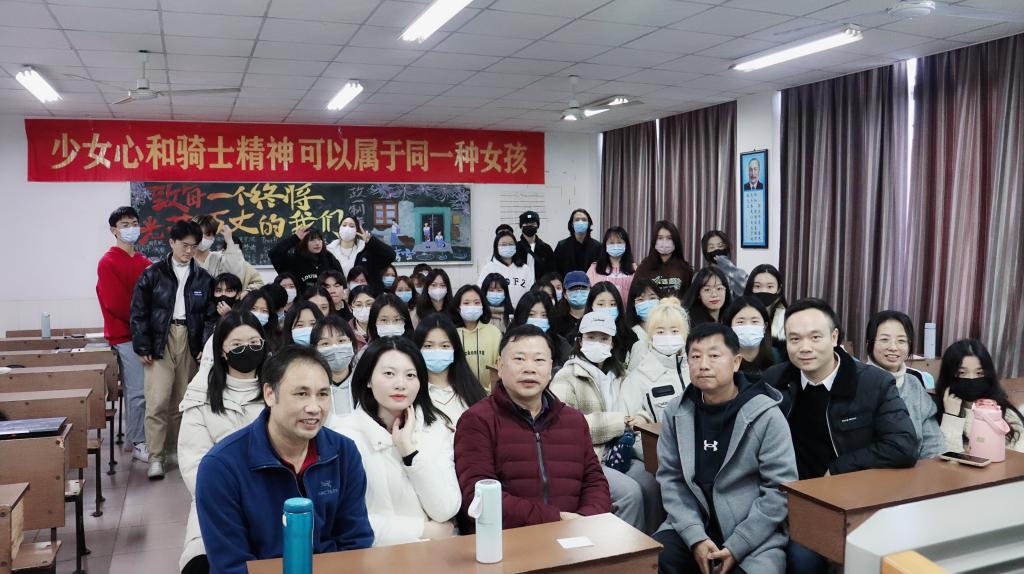 此次讲座由戏剧影视文学系教师李婕主持,副院长岳凯华、戏剧影视文学教研室主任曾小明、爱剪辑公司总裁易金一同到场,21级戏剧影视班全体同学参加。