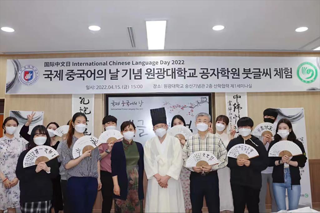 民间艺术学习和书法体验旨在鼓励学生感受传统文化的魅力和书法的神韵。我校孔子学院合作院校韩国圆光大学书法系主任金在龙向孔子学院的学生讲授了汉字的基本知识、演变过程、基本笔画的名称和写法等,并指导学生进行书法体验。