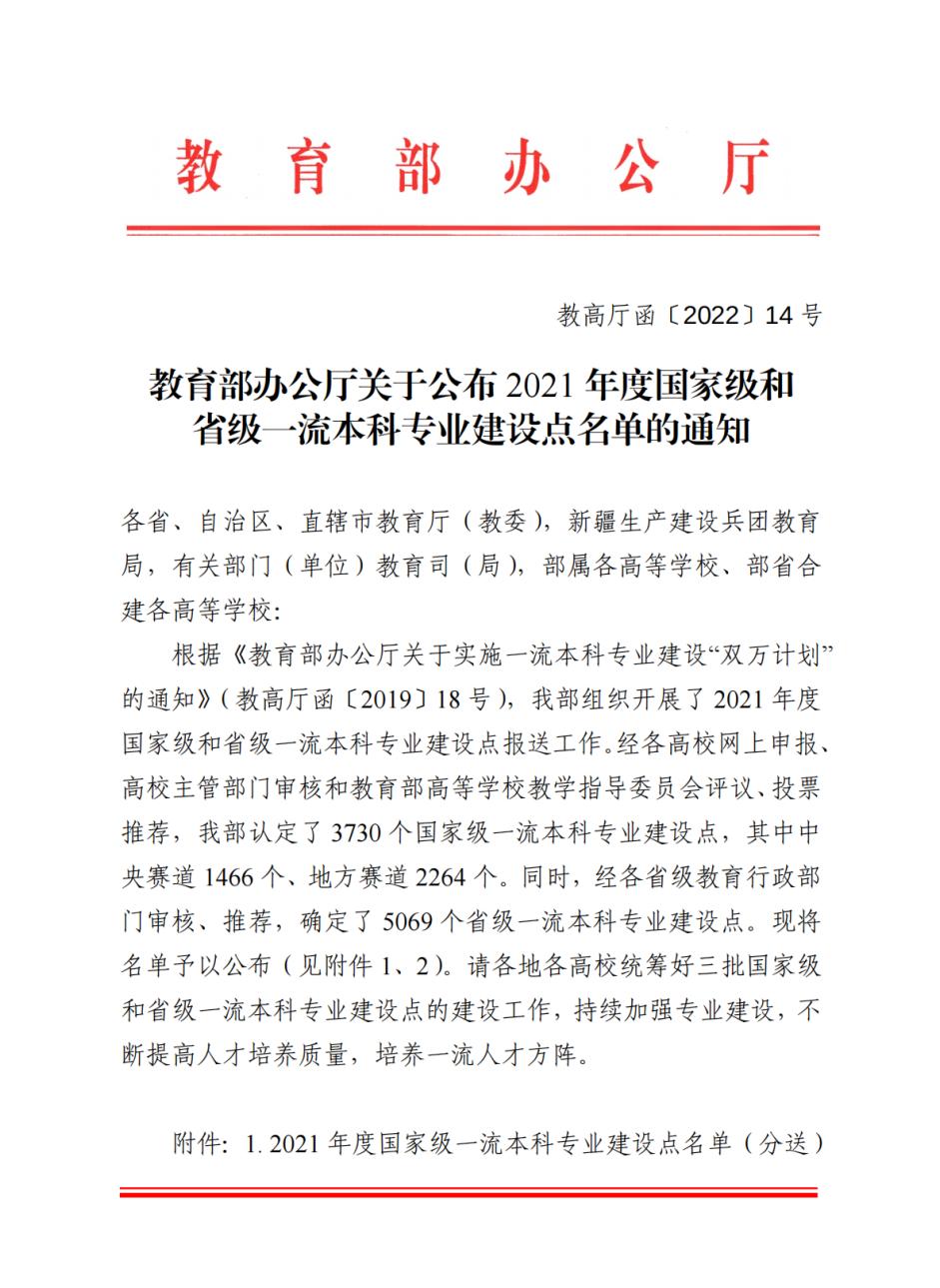 6月7日,教育部公布《2021年度国家级和省级一流本科专业建设点名单》,文学院戏剧影视文学专业获批国家级一流本科专业建设点。