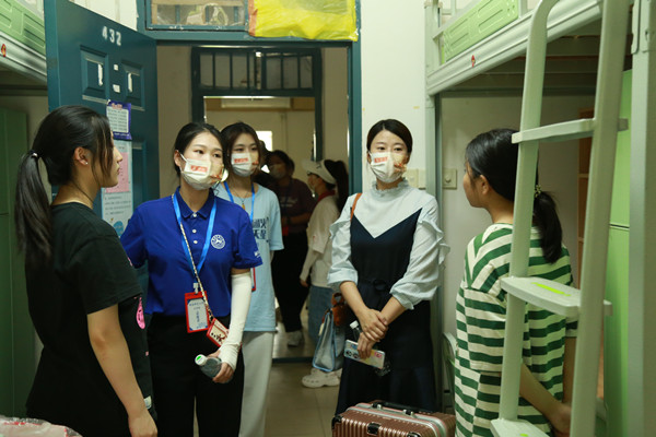 刘宓蜜对新生的到来表示欢迎,每到一间宿舍,她都详细询问新生报到情况,还认真查看了宿舍环境及内部设施。“你来自哪里?”“是不是第一次在学校住宿?”“来到这里适不适应?”“大学生活即将开始,有没有做好准备?”周紫阳则叮嘱新生认真做好规划,珍惜大学时光,在今后的学习中互帮互助,团结进取。对于学习生活中遇到的困难,要及时和辅导员、助理辅导员反映,辅导员及助理辅导员会积极帮助同学们解决问题。
