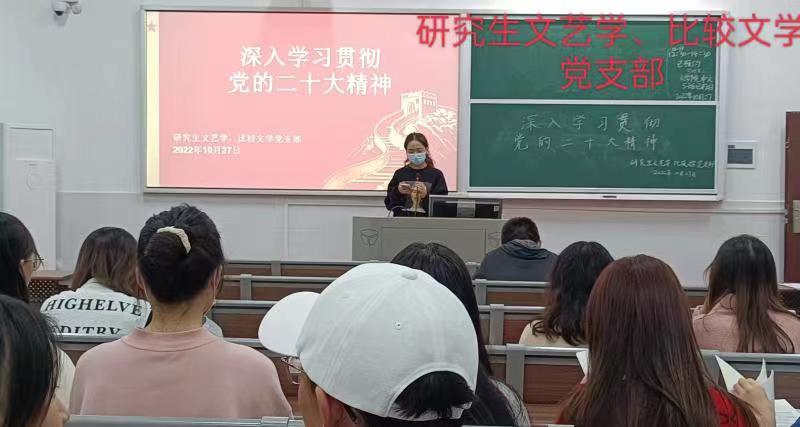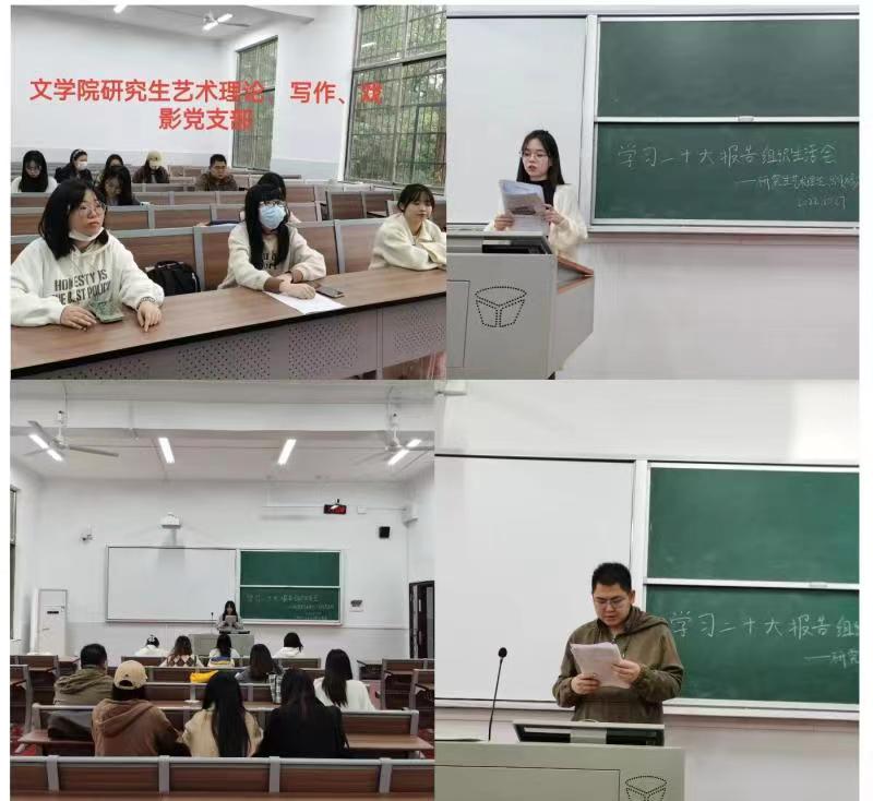 2022年10月27日下午,文学院党委组织全院党员以支部为单位认真学习领会党的二十大报告,贯彻落实党的二十大精神,大家纷纷发言,交流学习心得和体会。