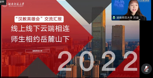 (通讯员 王羽熙 张飘儿)2022年12月21日-22日,湖南师范大学汉语国际教育专业作为中南片区学生代表团队之一,参加了由全国汉语国际教育专业学位研究生教育指导委员会、教育部中外语言交流合作中心联合主办的2022全国“汉教英雄会”国际中文教学技能交流活动。