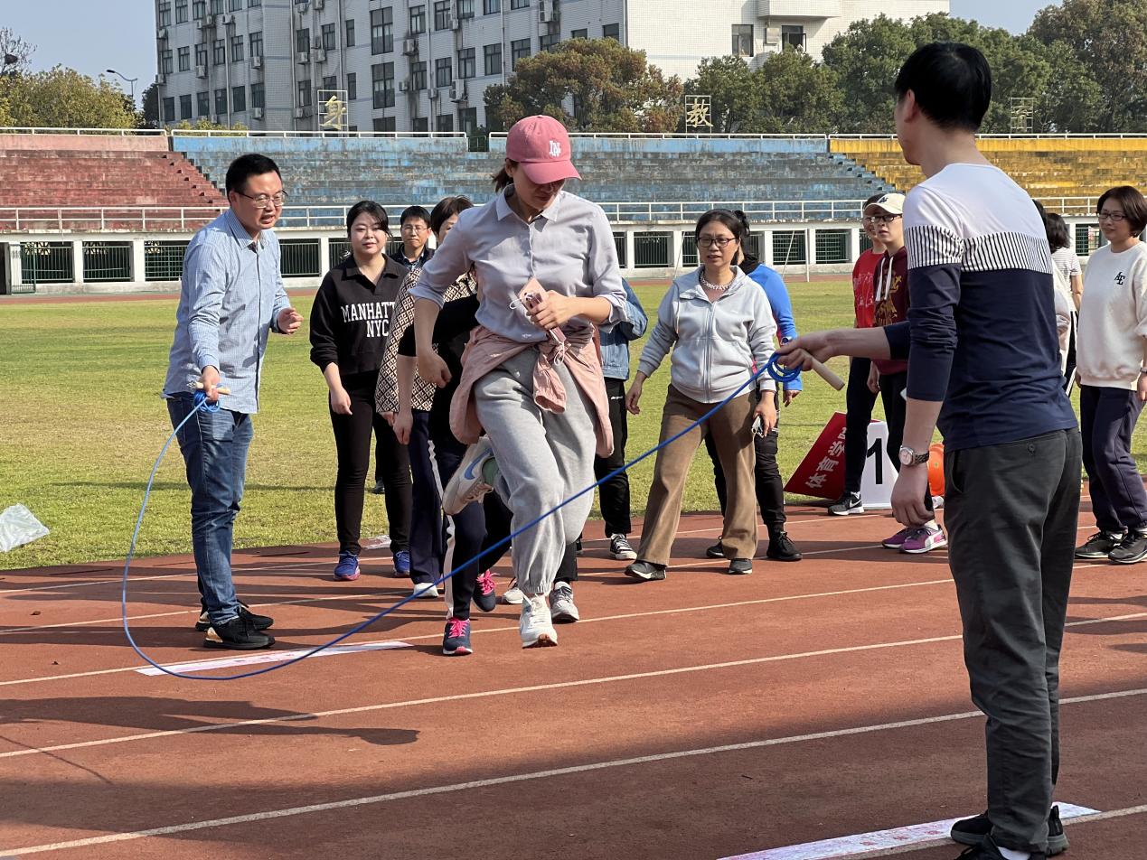 游艺活动分为一分钟呼啦圈挑战、团体跳长绳和能量传递游戏三个项目。我院教职员工在完成准备活动后,有序进入活动场地。学院的女教职工们斗志昂扬、奋勇争先,齐心协力完成每项比赛,现场气氛热烈,趣味横生,展现出文学院教职工之间团结友爱的氛围与团队凝聚力。