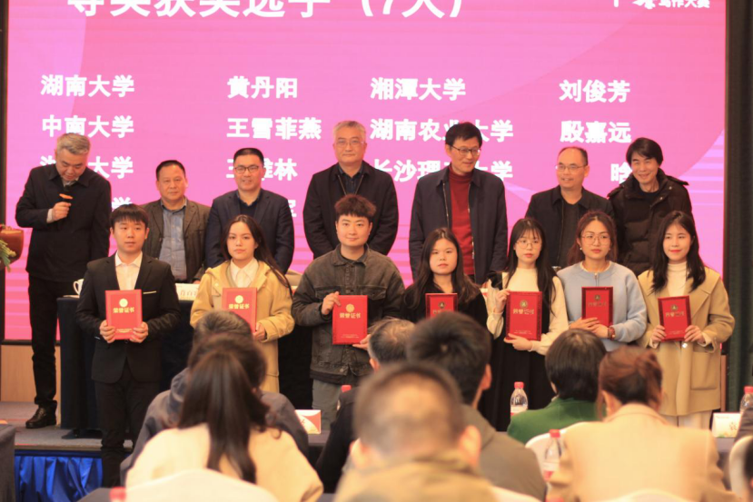 大赛颁奖典礼上,文学院李作霖教授宣布获奖名单,领导嘉宾为获奖选手颁奖。经大赛评审委员会综合评定,共有42名参赛选手获奖。其中我院研究生蒋云竹、周彦君荣获本次大赛二等奖。