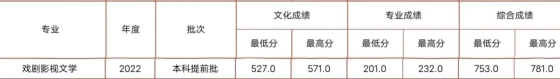 2022年录取分数线