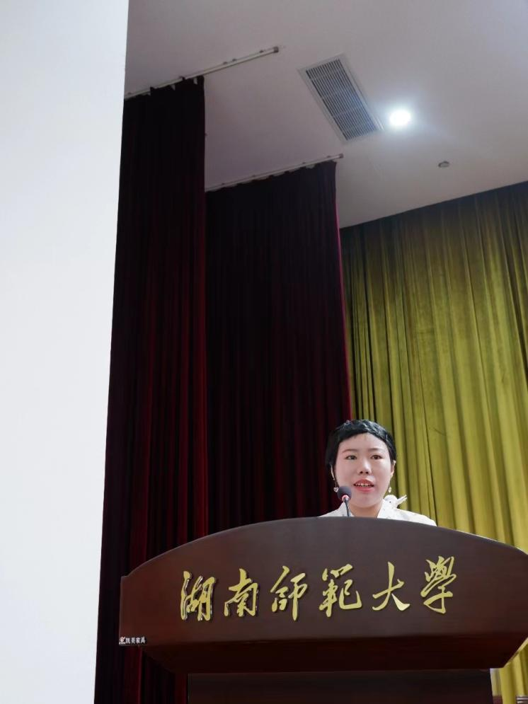 2021级硕士研究生吕可作为老生代表发言。他结合自身求学经历,分享了三点经验:一是以驰而不息的龙马精神面对未来的机会与挑战;二是锤炼自身品格,以简单积极的心态与人交往;三是要勤奋有为、积极进取,不负文院好时光。2023级博士研究生粟海清作为新生代表发言。她表达了与大家齐聚文院的激动心情,并围绕“勤”字分享了自己的经历与感悟,表示未来三年自己将抓住时间,合理规划,勇敢地奔赴未来广阔的天地。