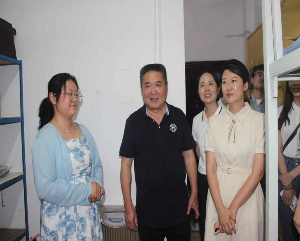 图为领导老师下寝慰问新生