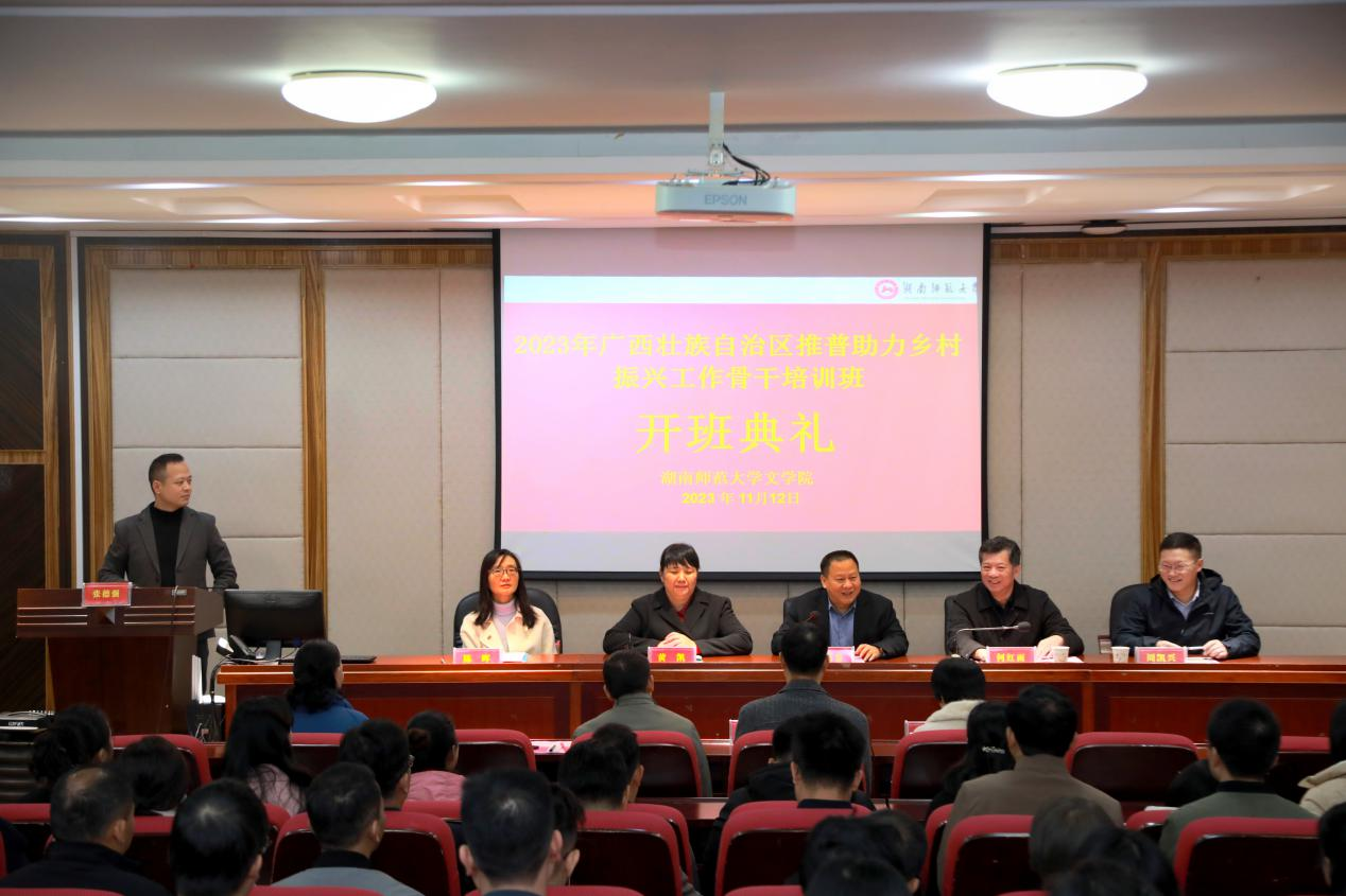 (通讯员:李妍佳 王婧之)11月12日,2023年广西壮族自治区推普助力乡村振兴工作骨干培训班在我院举行。自治区教育厅语工处处长黄凯、四级调研员韦方奇,湖南师范大学文学院院长肖百容、副院长周凯兴、对外汉语系主任陈晖,桂林师范高等专科学校副校长何红雨、教务处处长石群山,以及80名学员参加了开班仪式。开班仪式由院成教办主任张德强主持。