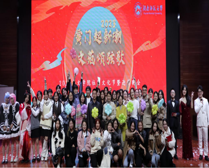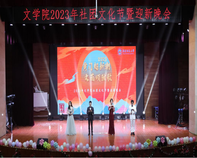 (通讯员 张瑞恩 张甜)11月17日晚,文学院在湖南师大附中芙蓉中学演播厅举行2023年社团文化节暨迎新晚会。此次活动以“黉门起新潮,文苑颂弦歌”为主题,旨在展现社团风采,表达学院对2023级新生的诚挚欢迎。文学院党委副书记刘宓蜜,2023级汉语言文学(师范)2班班导师谢淼、2023级汉语言文学(师范)3班班导师文浩、2023级汉语言文学(师范)4班班导师周葵葵,学工办主任、2021级辅导员周灿,2023级辅导员丛杨、2023级辅导员陈天歆、2022级辅导员彭君莅临此次活动。