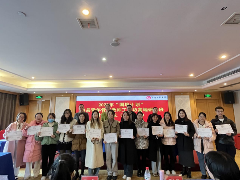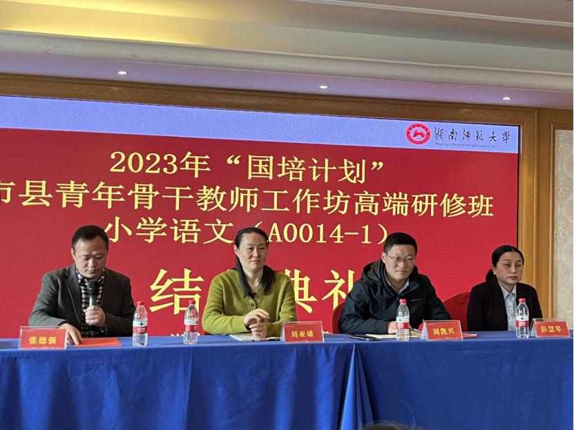 (通讯员:刘蕾)近日,湖南师范大学文学院承办的2023年“国培计划”市县青年骨干教师工作坊高端研修项目小学语文(A0014-1)结业典礼在学员下榻的酒店举行。本次国培计划以“整本书阅读教学”为主题,主要面向湖南省内的小学语文教师,旨在提高他们的教育教学水平,推动基础教育的发展。