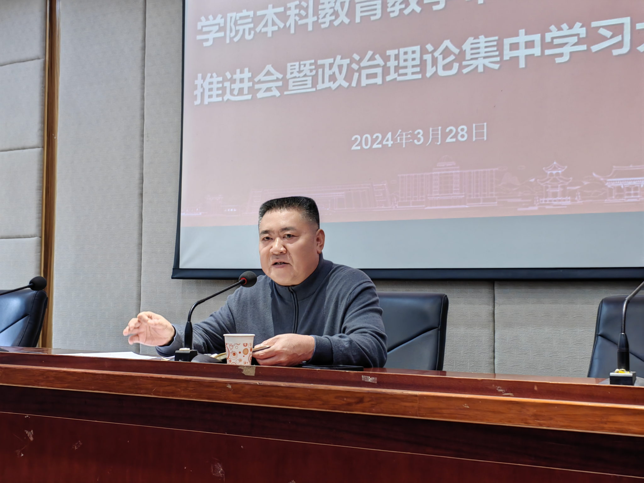 2024年3月28日下午,学院在216报告厅召开本科教育教学审核评估工作推进会暨教职工政治理论集中学习大会,全院教职工参加,会议由院党委书记李伶俐主持。