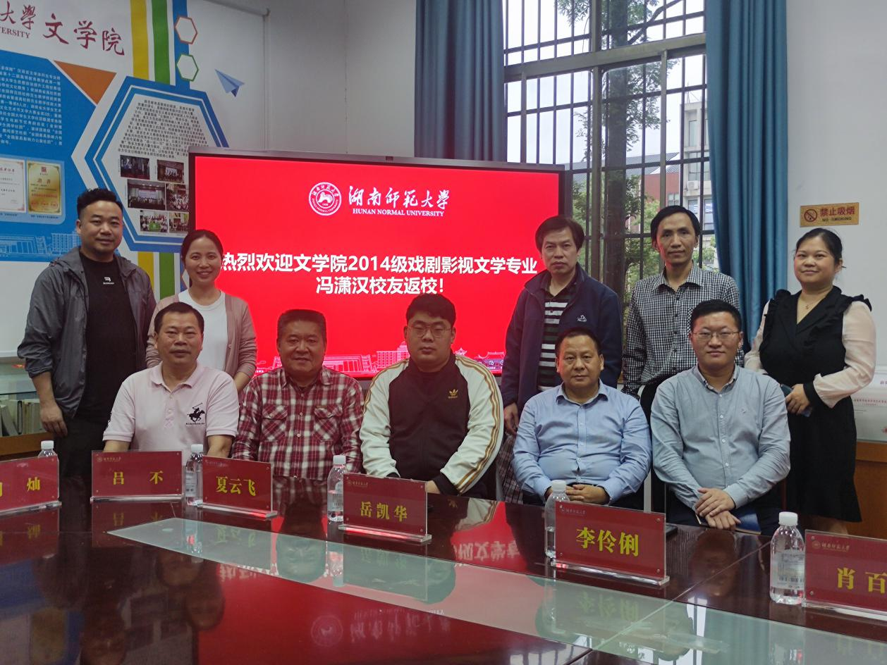 (通讯员张尧钰王辰瑶)4月16日下午,我院2014级戏剧影视文学专业优秀校友冯潇汉回访母校。党委书记李伶俐、院长肖百容、副院长岳凯华、副院长周凯兴、副处专职组织员夏云飞、戏剧影视文学系系主任胡海义、学工办主任周灿,专业教师高欢欢、吕不出席座谈会。