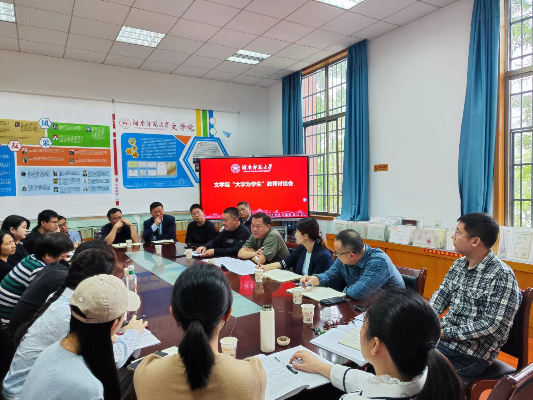 为进一步提升本科教育教学质量、更好地服务学生的成长与发展,4月19日上午9时,文学院在314教室召开了“大学为学生”教育研讨会。会议由文学院教学副院长岳凯华主持,文学院党委书记李伶俐、副院长徐朝红、党委副书记刘宓蜜、学院专职组织员夏云飞、各系主任、各教研室主任、各办公室负责人参加了本次研讨。
