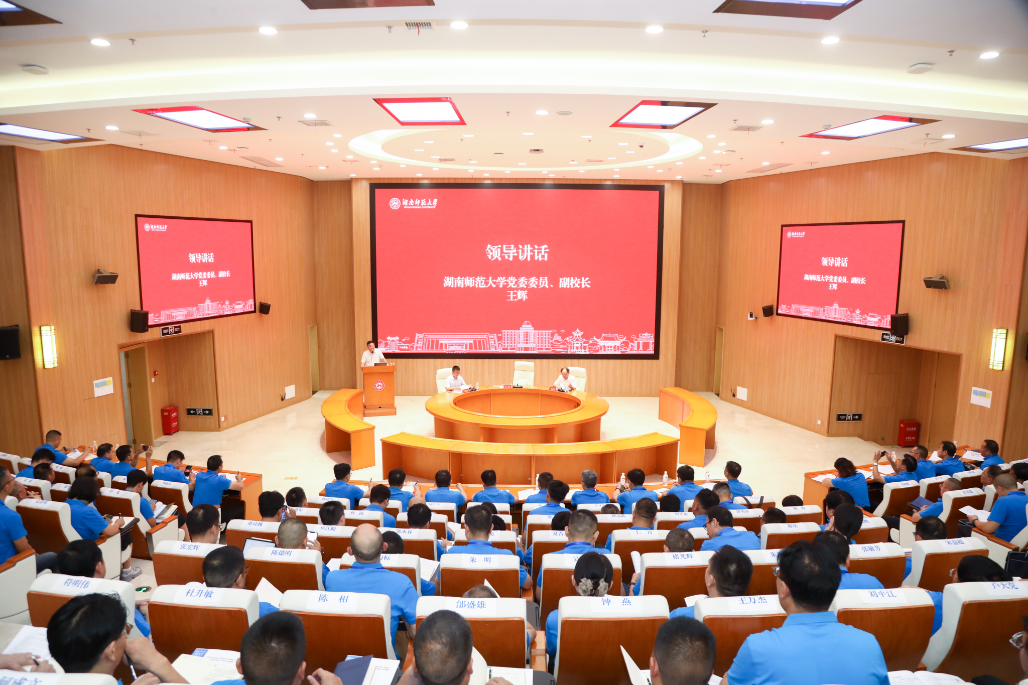 王辉副校长代表学校对学员们的到来表示欢迎,向中组部、教育部的信任表示感谢。他介绍,湖南师大创办于1938年,是国家“211工程”“双一流”建设高校,以师范教育立校,培养了众多优秀人才,在湘、粤、黔等省共建20多所中小学,彰显了师范大学的社会担当。