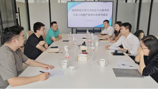 2026年4月8日,湖南师范大学文学院党委书记熊剑峰、副院长岳凯华教授一行赴长沙市天心经济技术开发区开展专题调研,围绕深化校地合作、推动“文化+科技”融合发展进行实地走访与座谈交流。天心经开区党工委委员、天心文广发展中心党组书记、主任谢巍及“文化+科技”工作专班陪同调研并参加座谈。