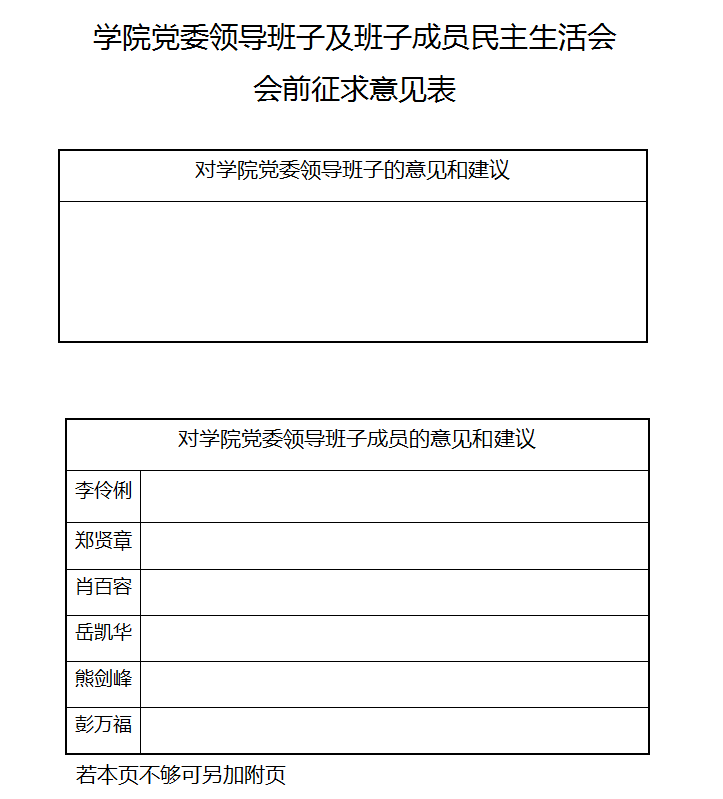 为确保此次民主生活会开出质量和效果,现就领导班子及成员在思想、组织、作风、纪律等方面存在的问题,面向学院师生征求意见和建议(参照附件1),请广大师生高度重视,密切配合,将意见和建议投入文学院大楼一楼的意见箱内。