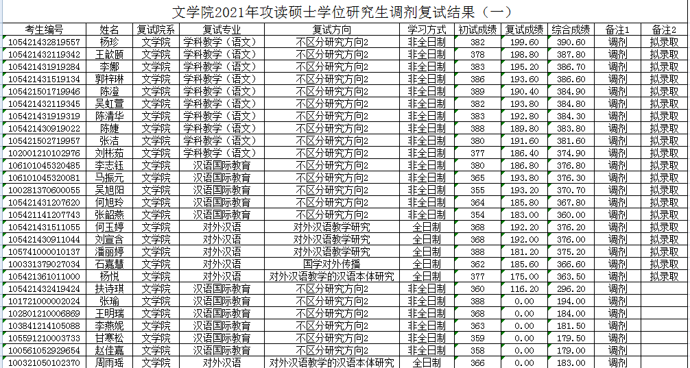 2021年度文学院硕士研究生调剂复试名单公示