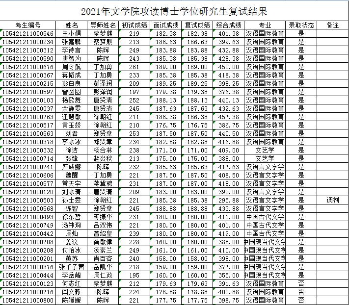 湖南师范大学文学院2021年博士研究生复试工作方案
