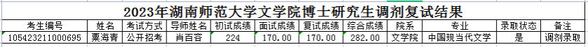 2023年湖南师范大学文学院博士研究生调剂复试结果