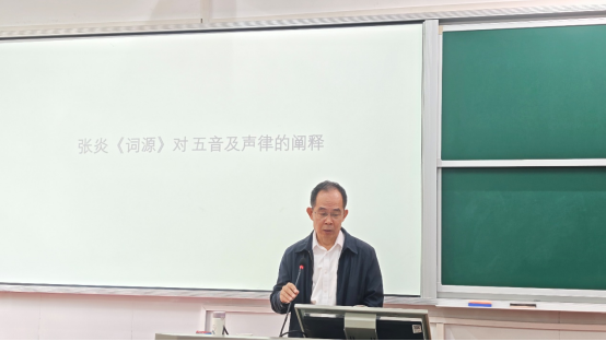 (通讯员罗曙)2025年10月17日上午,河北大学博士生导师、曲学研究中心主任田玉琪教授前来文学院作了题为“张炎《词源》对五音及声律的阐释”的学术讲座。讲座由吴晨骅老师主持,谢雨情老师、闫梦涵老师及中国古代文学专业的研究生30余人到场参与学习交流。